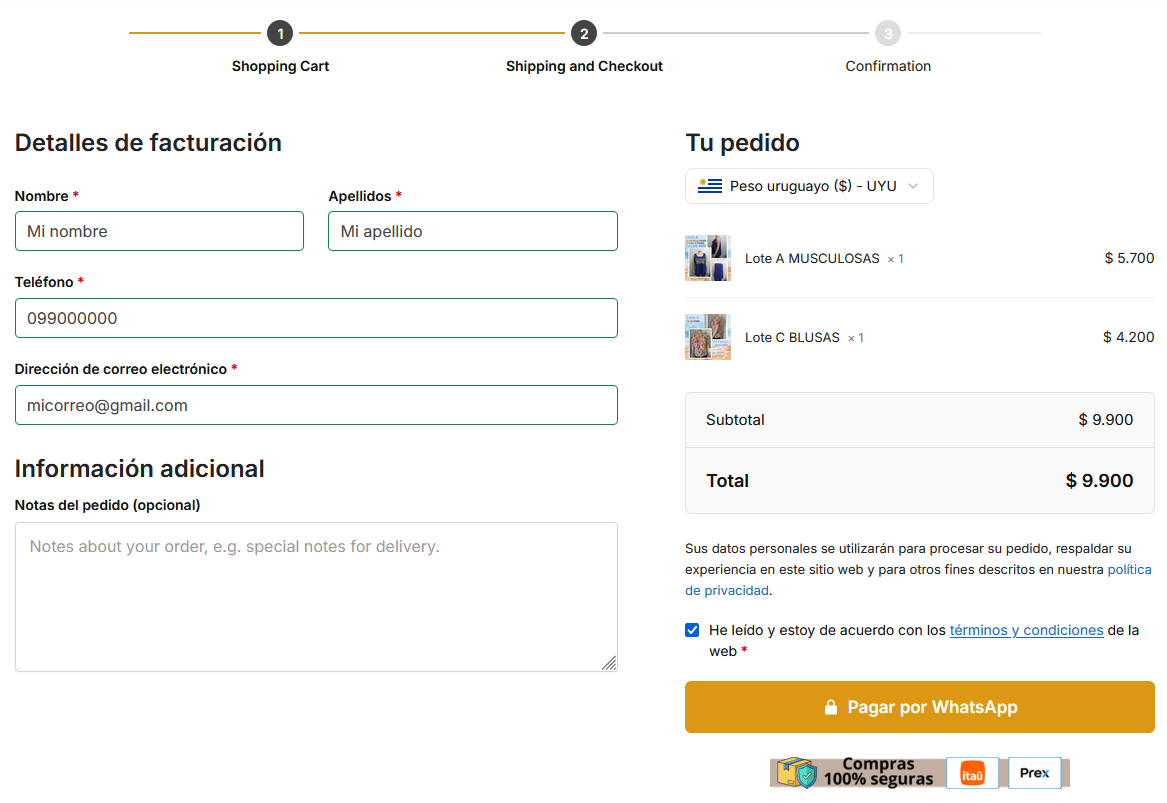 3 – Verificamos tu pedido y te enviamos los datos para que puedas realizar el pago (transferencia a ITAÚ o PREX) para finalizar la compra.