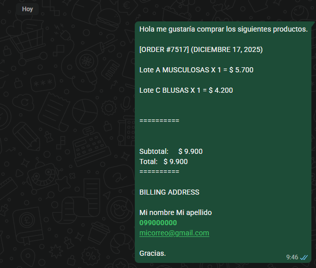 Si tienes problemas en este paso para enviarnos el resumen tu compra, contáctanos por WhatsApp directamente. Al pié de la tienda Online encuentras nuestro contacto.